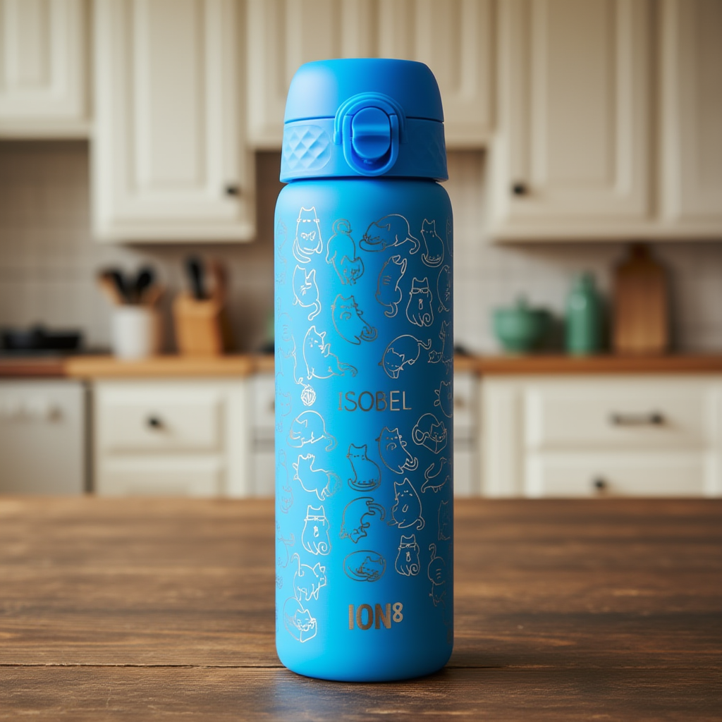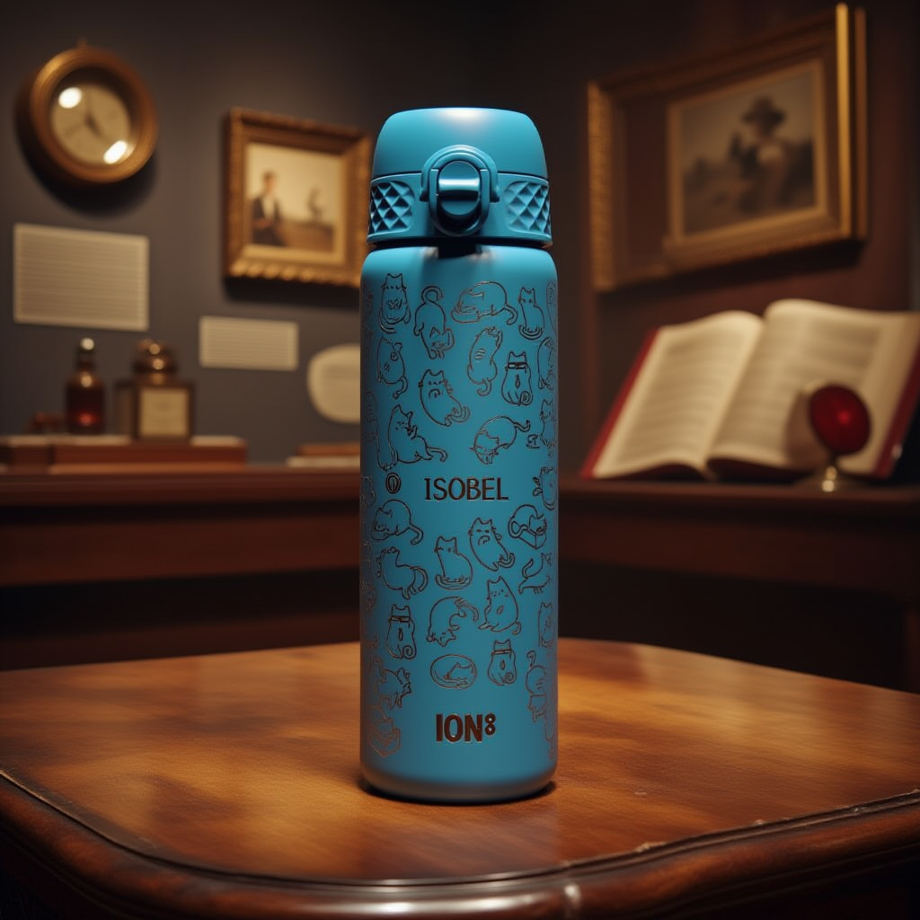 vintage 1950s museum display, warm sepia lighting, film grain, antique wooden table, soft shadows, nostalgic atmosphere, 8k, highly detailed, product: kitchen & dining, water bottle, professional product photography, elegant composition