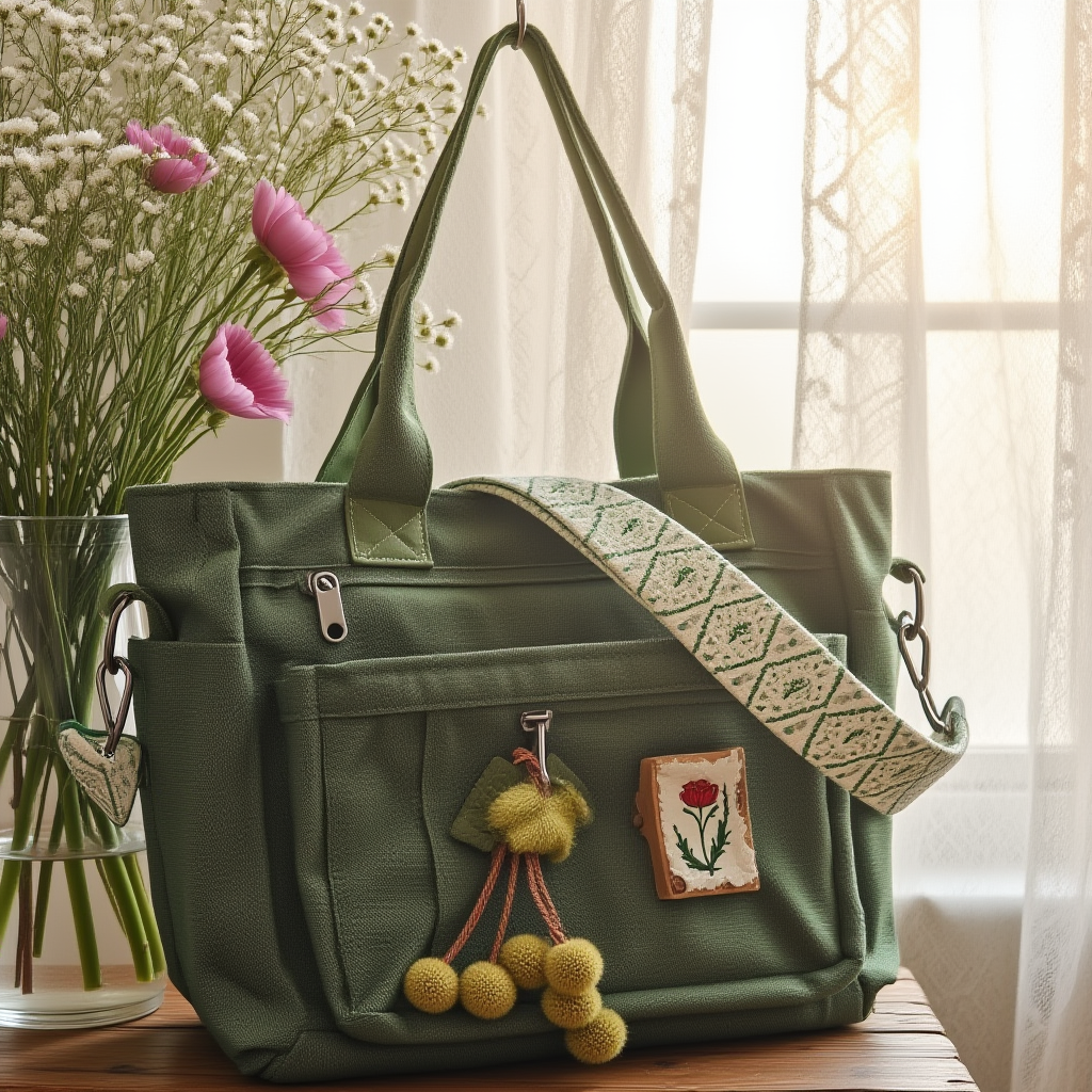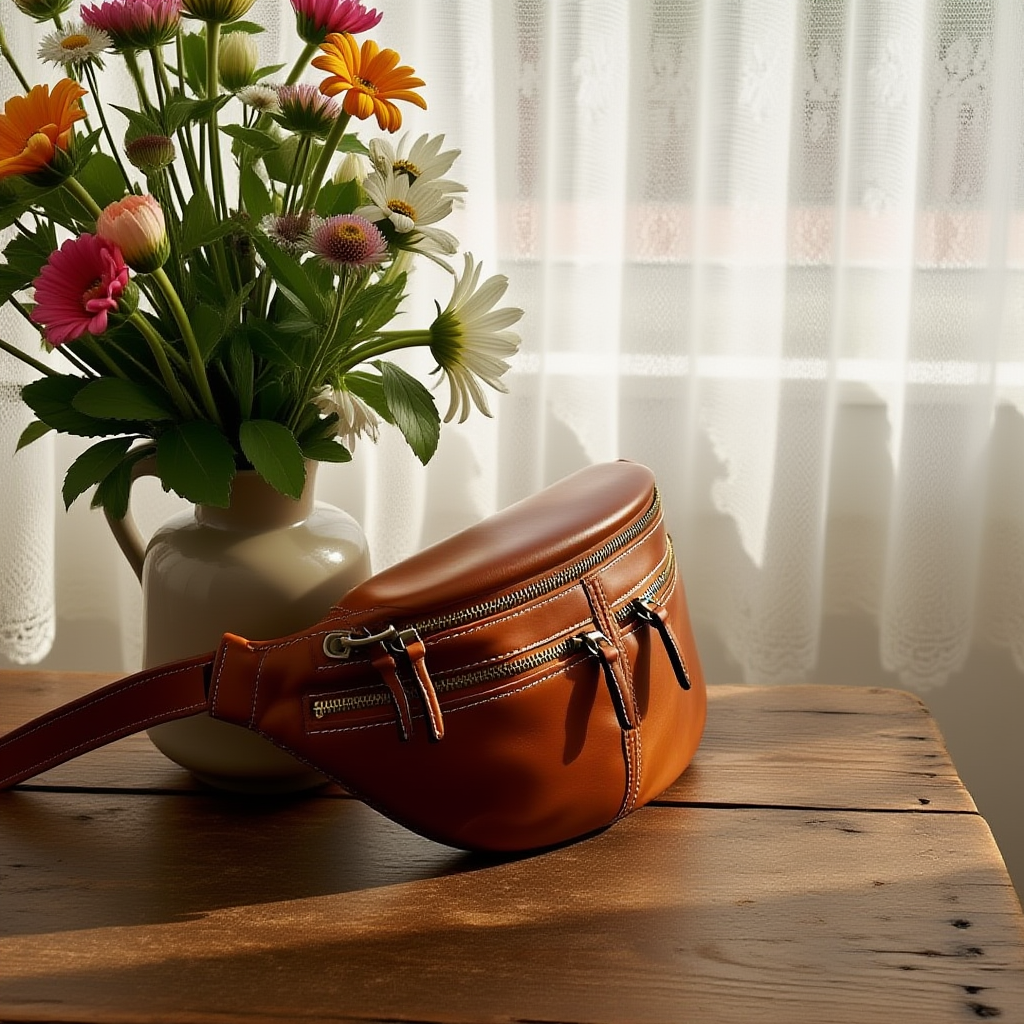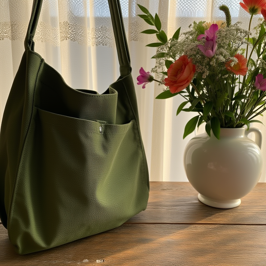 Vintage {main_category} {sub_category} resting on a rustic wooden table beside fresh flowers, morning sunlight filtering through lace curtains, nostalgic domestic scene